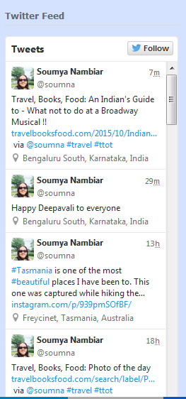Another great widget you can add is the Twitter feed. You have an option of creating these widgets and then displaying it in your blogs. More details here: Twitter Feed